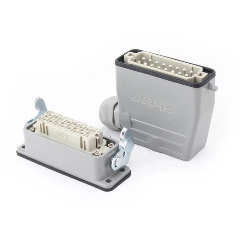 Võrreldes HE-016-ga on CHTARi vastupidav 16A 10 kontaktiga raskeveokite pistik 16 kontaktiga miniversioon. See võib töötada väiksemas ruumis. Tavaliselt monteeritakse need kokku HA-016 alumiiniumkorpusega. Need on valmistatud ülitugevast arvutist ja nende sees on messingist hõbetatud tihvtid. Sellel on 16 kontakti, mis on ühendatud 16 juhtmega. Meie tehas asub Hiinas Zhejiangi provintsis Yueqingi linnas. Oleme raskeveokite pistikuid tootnud üle 10 aasta ja meil on üle 15 aasta kogemusi ekspordikaubanduses. Loodame saada teie usaldusväärseks pikaajaliseks partneriks Hiinas.