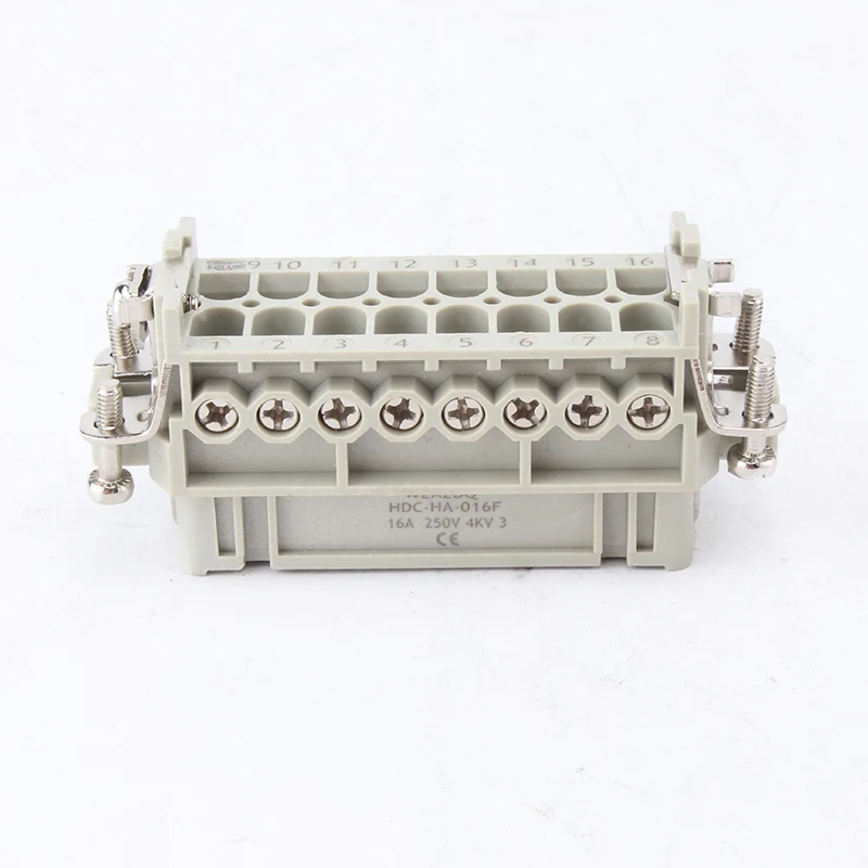 16A 10 kontaktiga raskeveokite pistikud on emas- ja isased inertsed osad. HA-016-M ja HA-016-F on mees- ja naisosa, need on komplektina omavahel sobitatud. Need töötavad koos H16A alumiiniumkorpusega. Vahetüki komponendid ja väliskorpus moodustavad koos tervikliku ühendustoote. Need on valmistatud PC kestast ja hõbetatud messingist tihvtidest. Hõbetatud tihvtid muudavad selle hästi elektriühendusteks.