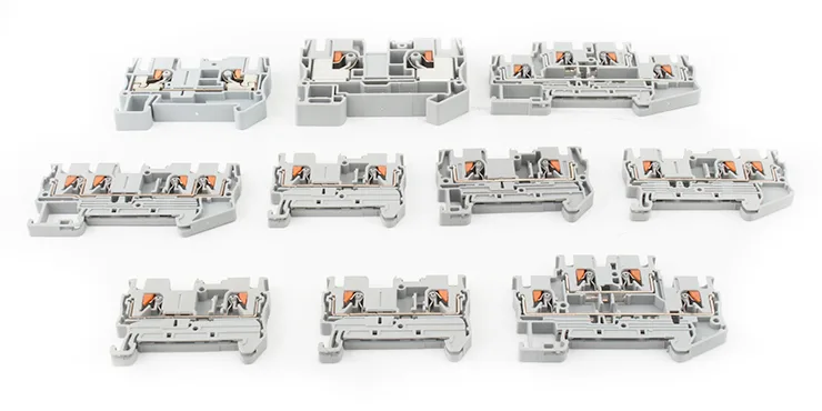 Toite läbi Din Raili klemmiplokk on PT-seeria, mis esindab ühendustehnoloogia arengut, kasutades sissesurutavat vedrupuurmehhanismi. Täiustatud etteanne läbi din-rööpa klemmiploki võimaldab vahetult sisestada ettevalmistatud täis- või soonega keerutatud juhtmeid ilma ajamtööriistadeta. See ühendab vedruklambri tehnoloogia kiiruse veelgi lihtsama ühendamisprotsessiga.