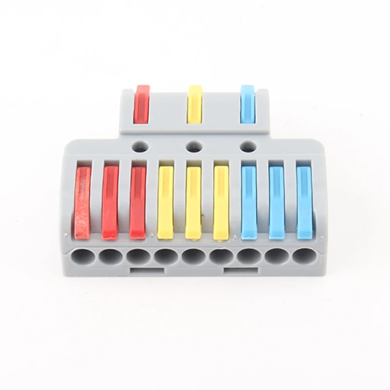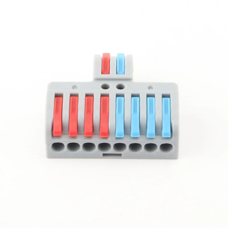 Multi-in Multi Out Splicing Wire Quick Connectors klassikaline toote välimus, erinevat värvi käepideme vaheseinad realiseerivad toote juhtmestiku suuna erinevust. Andke kasutajatele selgemalt teada, kuidas haruliine ühendada. Toote ülaosas reserveeritud katseava võimaldab klientidel pärast juhtmestiku ühendamist sisselülitamise toimivust testida.